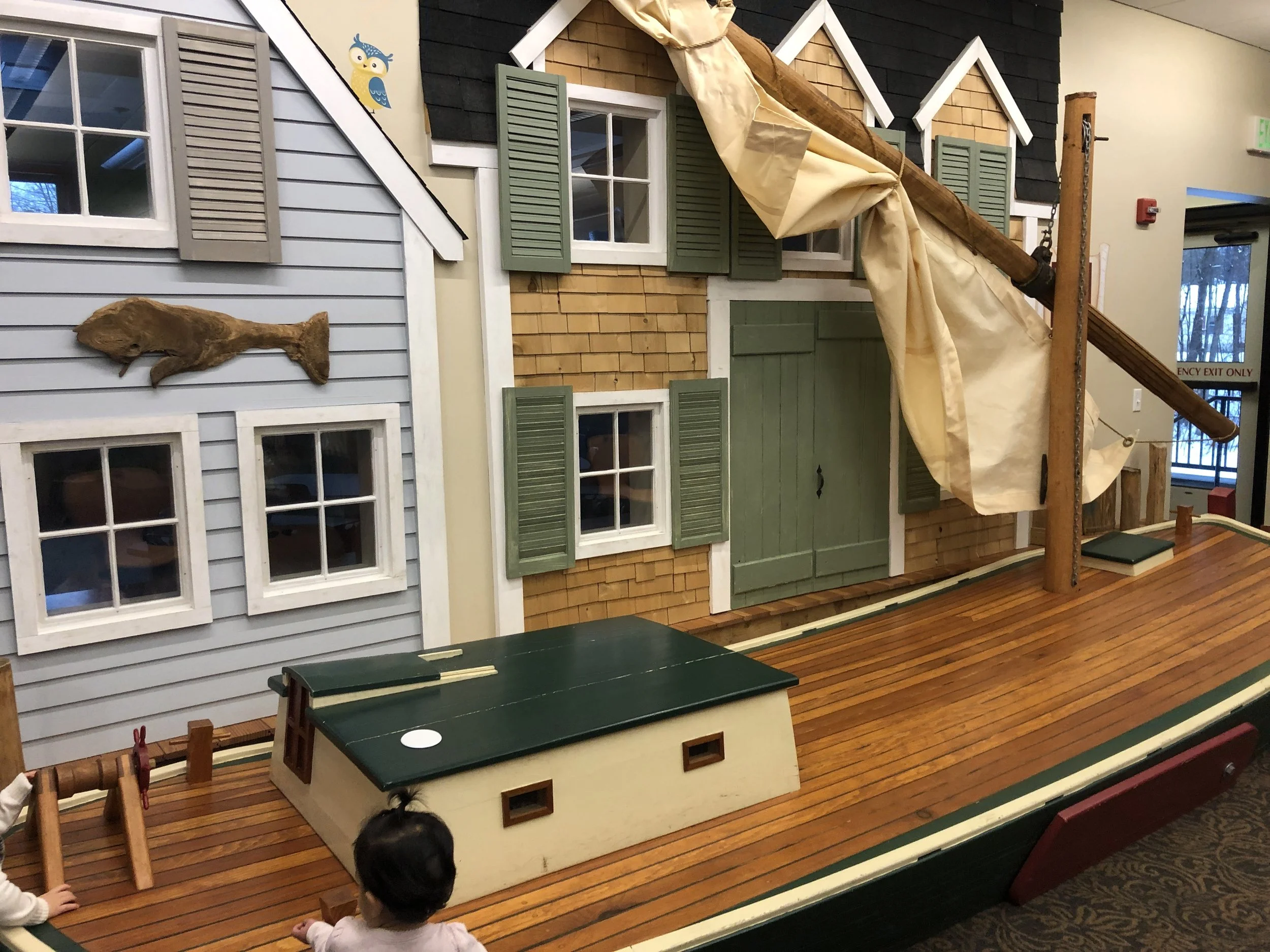 inviting children’s play area, which includes a train table, puzzles, books, and toys